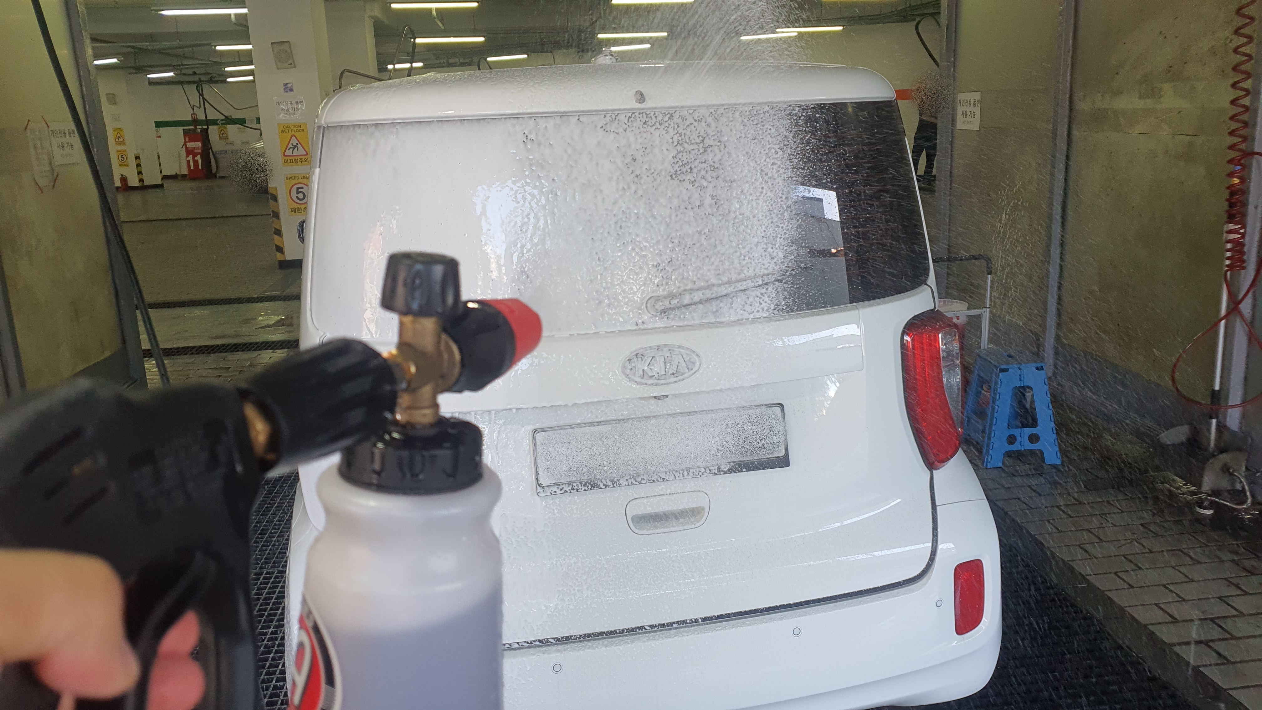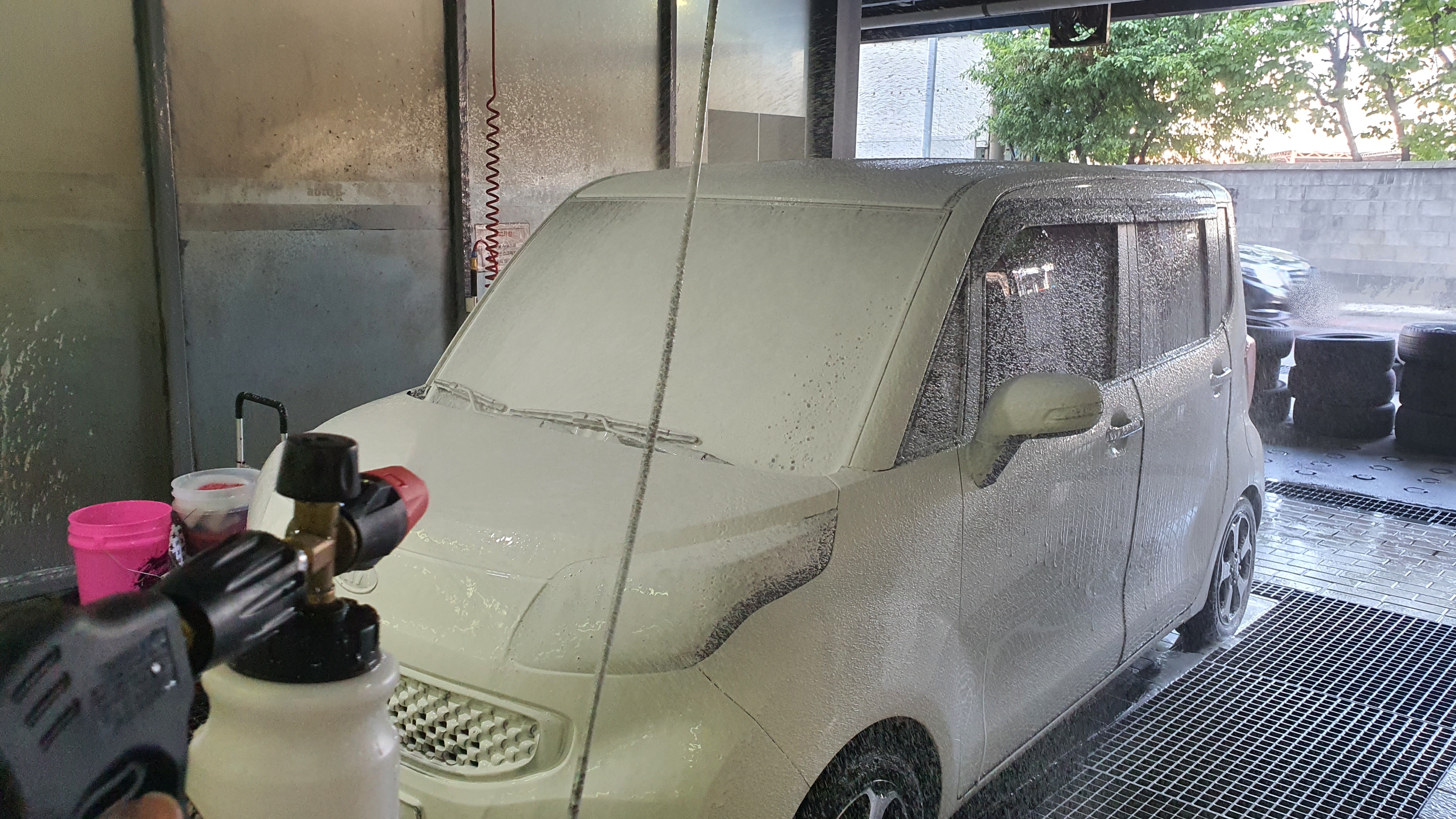 - 세차가 끝날 때 버킷에 거품이 오래도록 남아 있었고, 실내에서 해서 그런지 모르겠지만 샴푸가 마르지도 않았습니다.