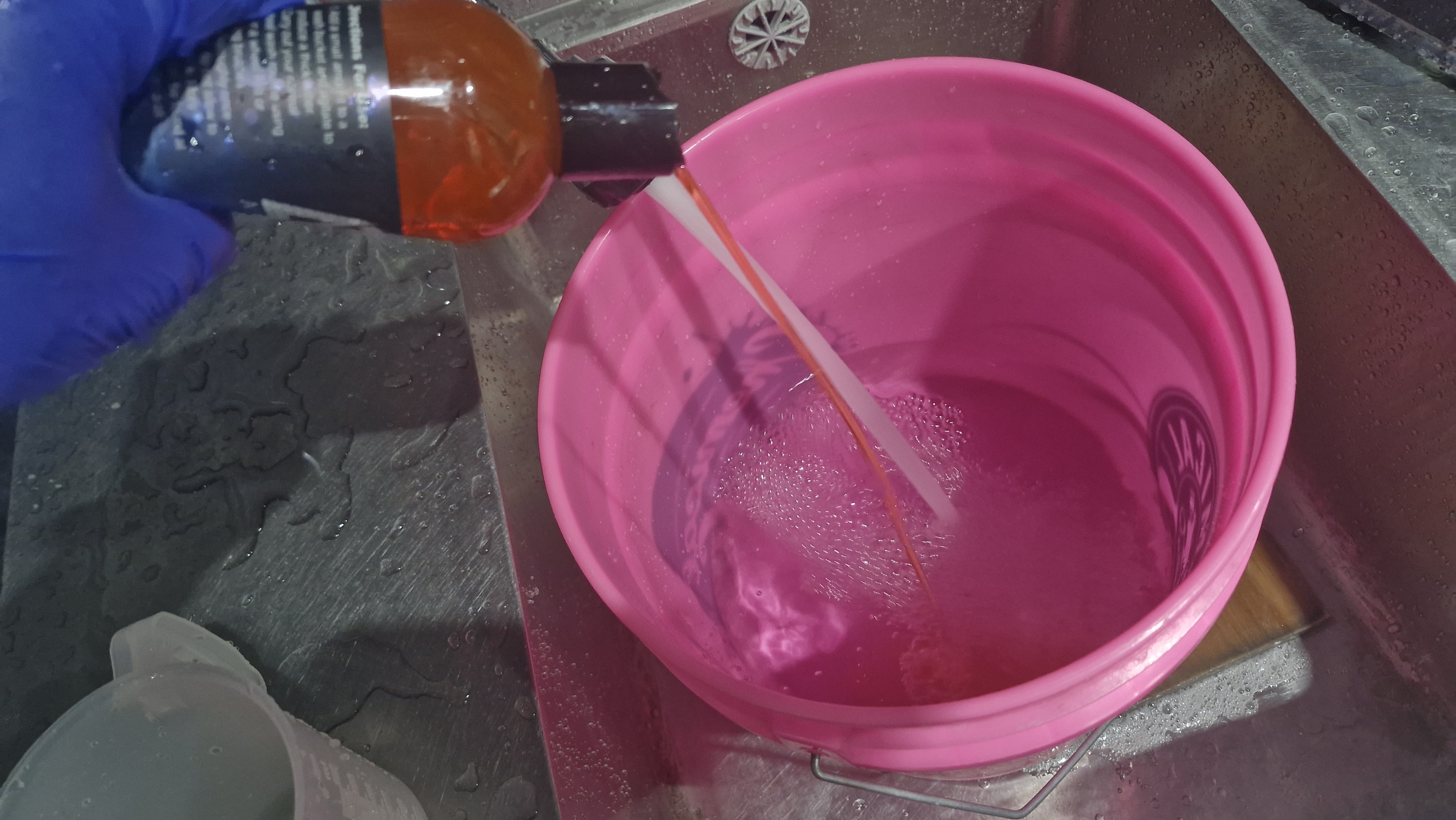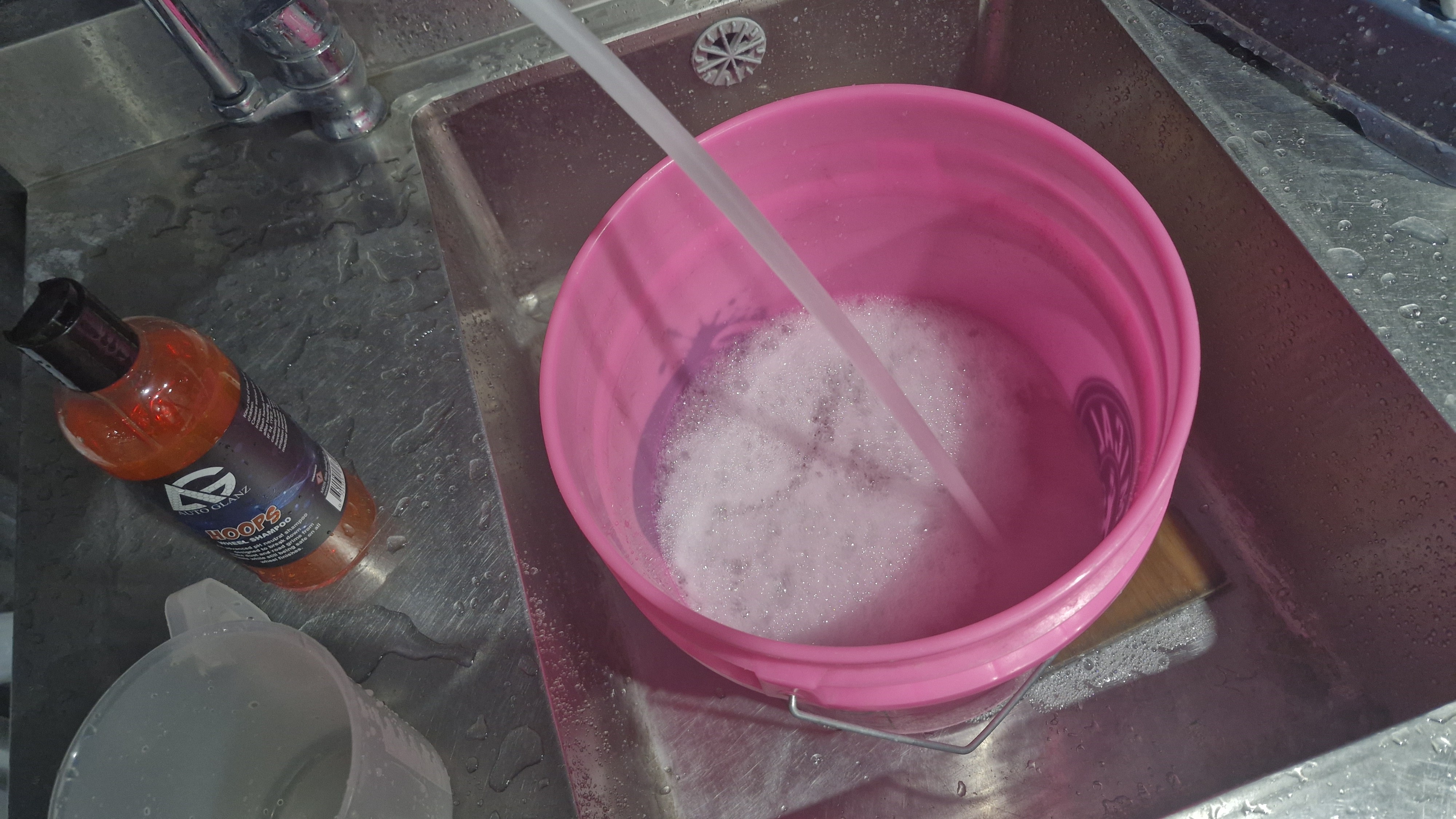 중성 휠 샴푸라 하고, 휠 버킷에 2~3 뚜껑을 넣으라고 하네요.