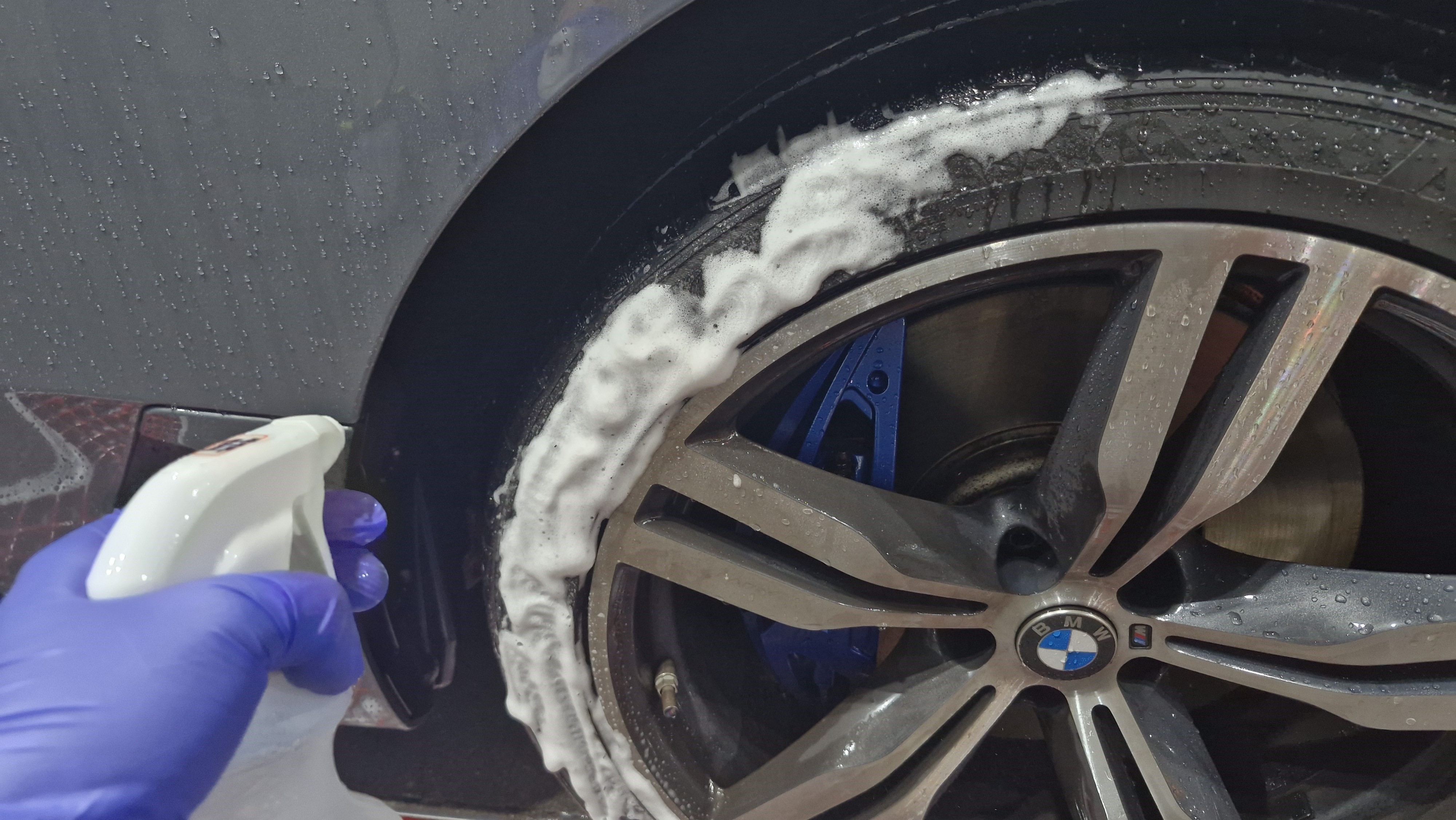 휠은 오염이 많다 보니, 다시 한번 더 휠 샴푸를 뿌려줍니다.