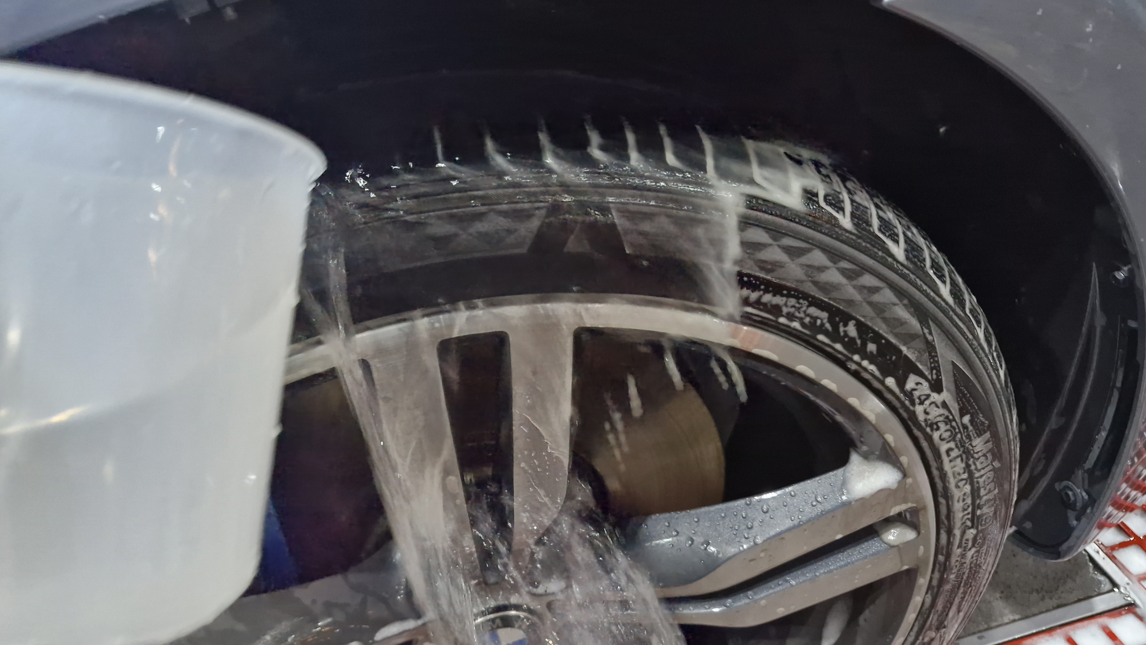 - 휠 4개를 다 세정하는 동안 휠의 오염물이 버킷에 희석이 되긴 했지만, 거품이 어느 정도 살아 있었습니다. 완전히 꺼지지는 않았어요.