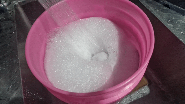 다시 물을 부어주고 씻어냅니다.